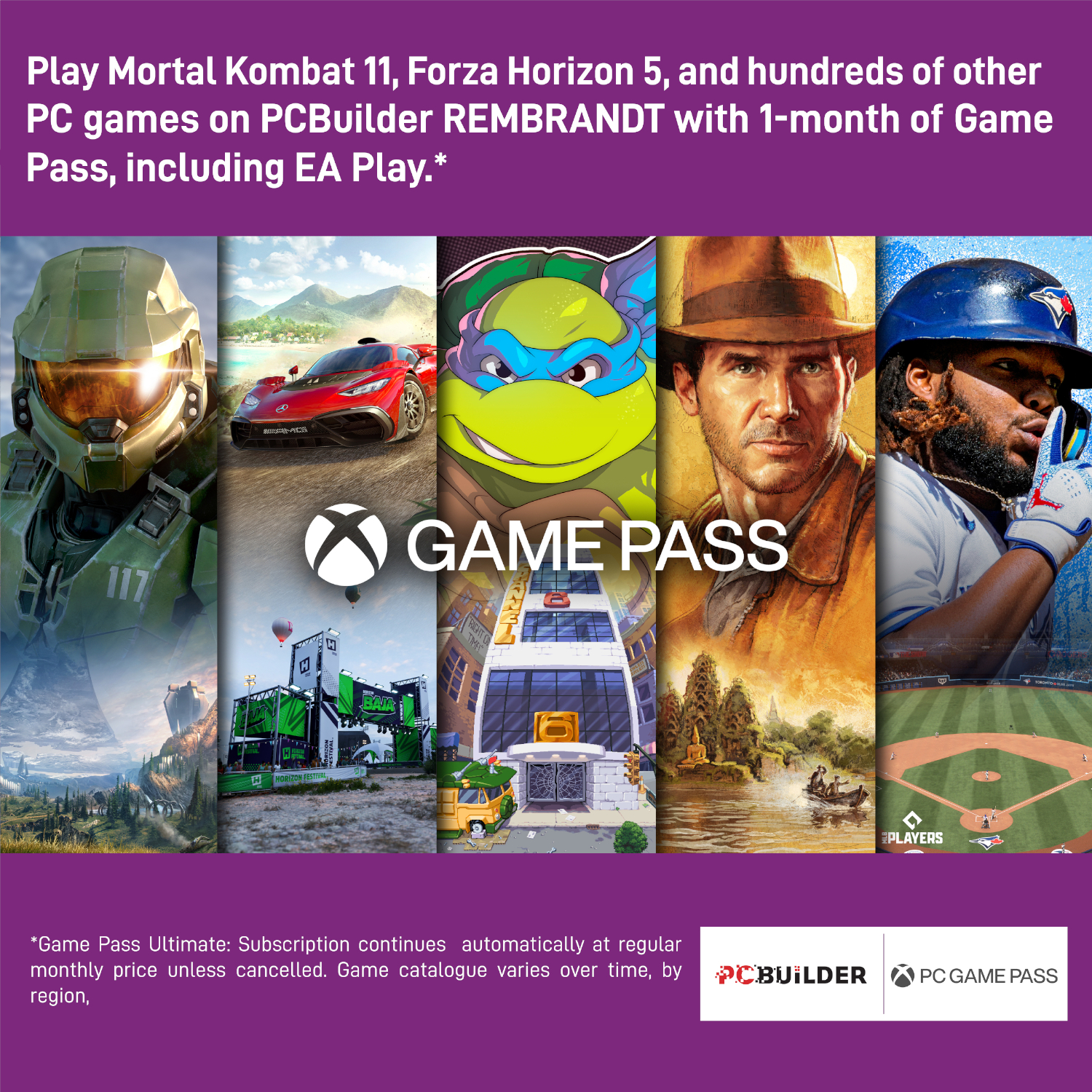 - Play over 100 high-quality PC games like Halo Infinite, Forza Horizon 5 and Teenage Mutant Ninja Turtles: Shredder’s Revenge with your new build and one month of PC Game Pass, including EA Play. With new games being added all the time, there’s always something new to play from day one.